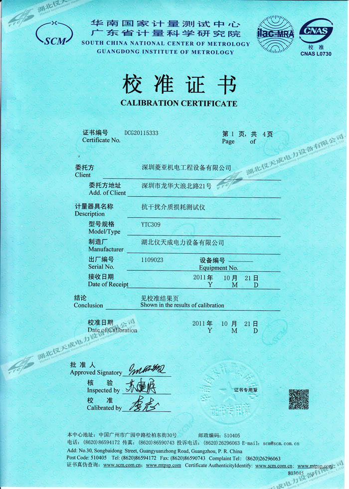 首頁 > 預防性檢測設備 > 鑒定證書 >